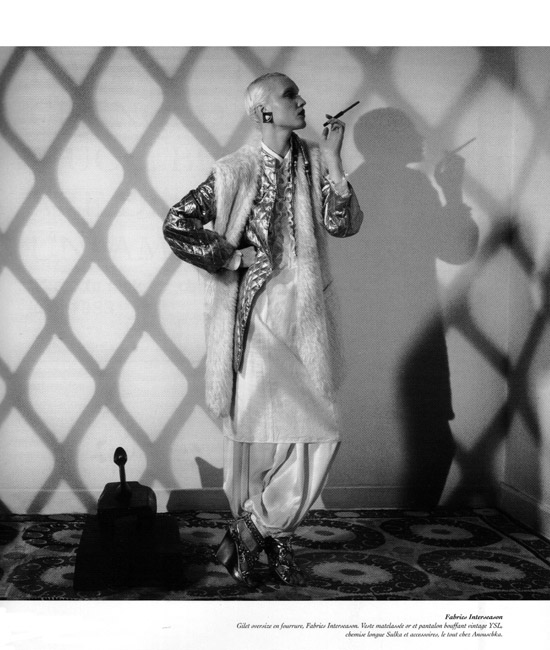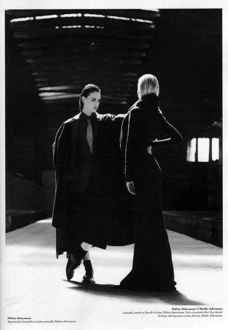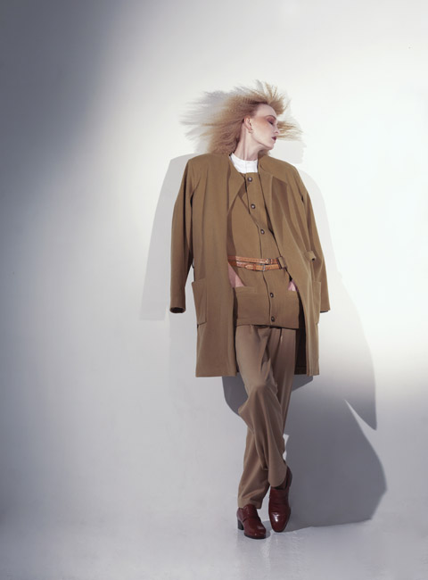 “even break hershey highway” describes a comment on the way to break-even. several “key-pieces” of ____fabrics interseason´s archive like the beer-belly-shape, diverse cover-solutions, the 3-T-neck, the double coat or the “viennese” shirt are interpreted as fragmentary alternatives for the fall/winter 2010-11 season: hairy hirsute fur, leather, faecal shades of brown, a little polyester now expand the existing insignia of a modern, contemporary bourgeois classical age (virgin wool, alpaca, mohair, camel wool etc. - all in the finest handcrafting). issues of luxury and the bourgeois class are consequently debated in a new kind and formally constructed in an alternative way (see the handwoven rugs).